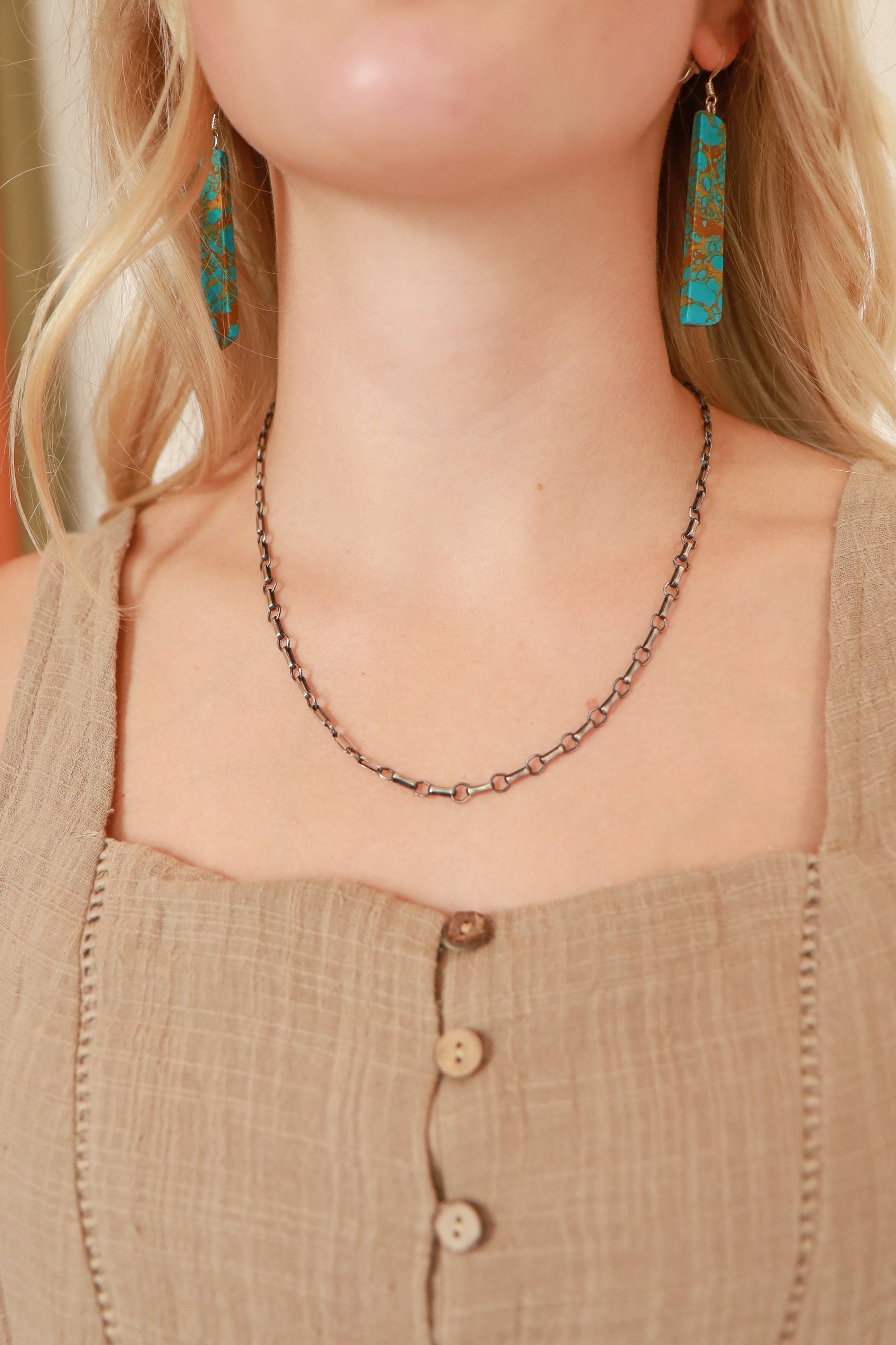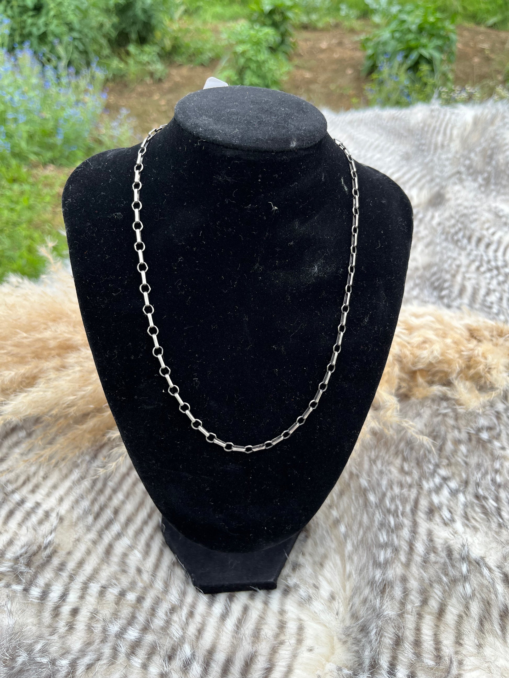 20" antiqued sterling silver chain that is adjustable and you can add pendants to.