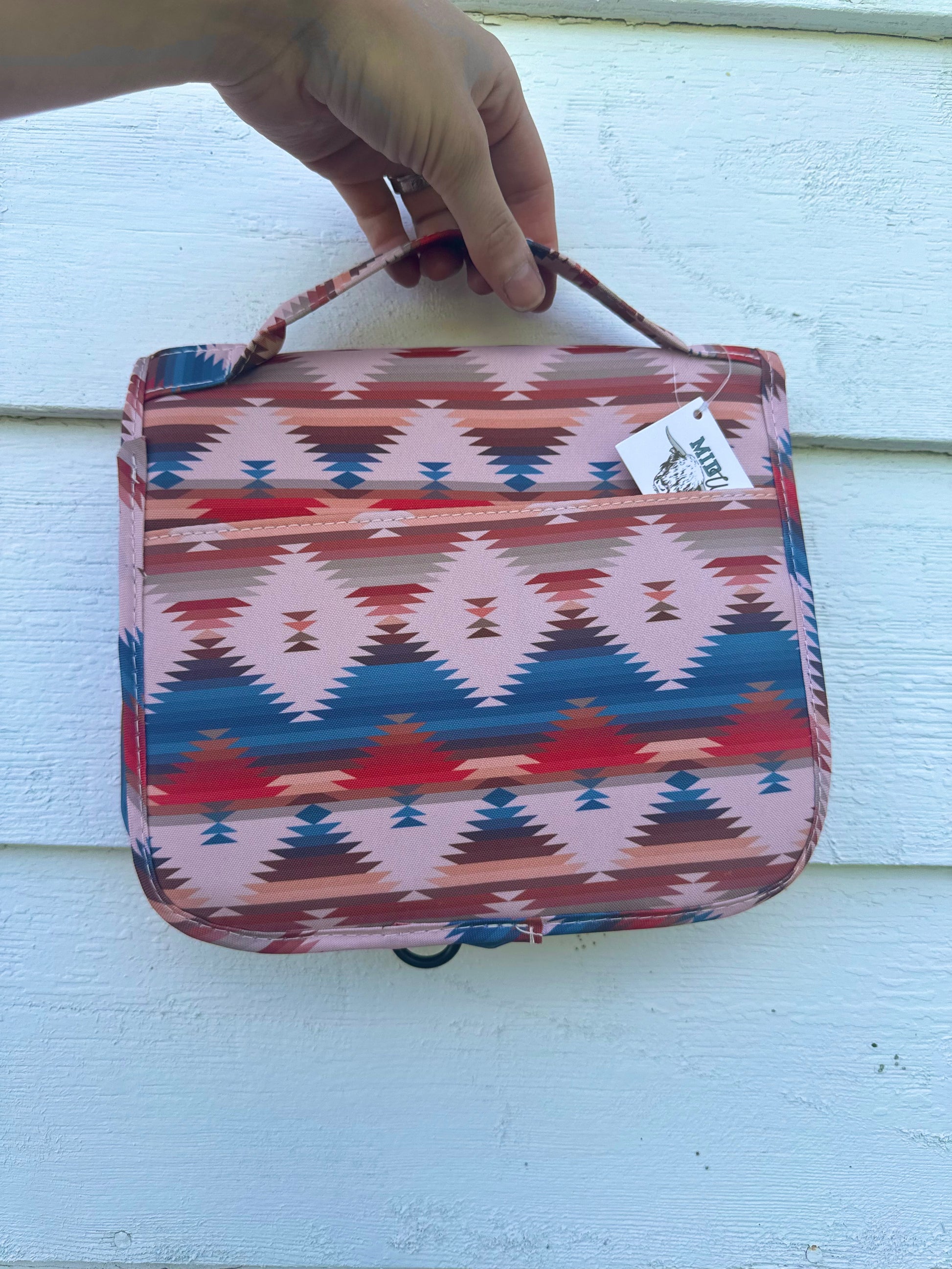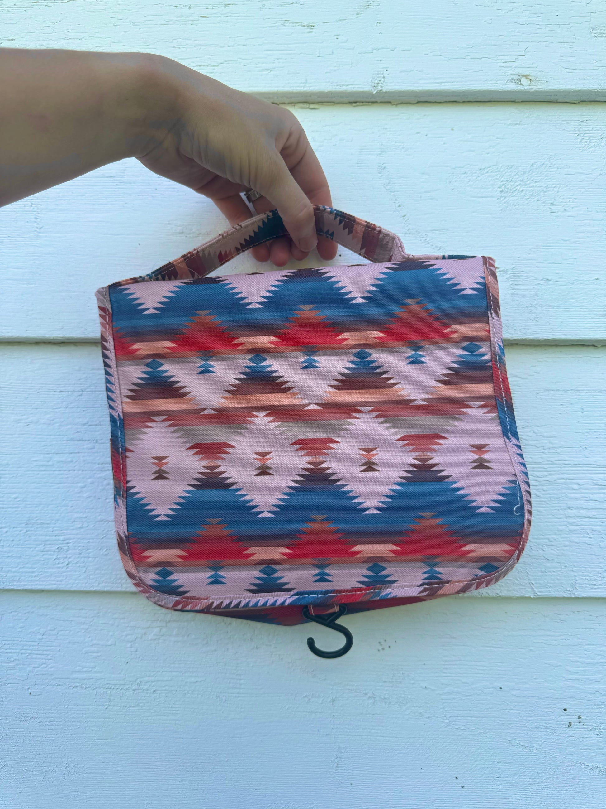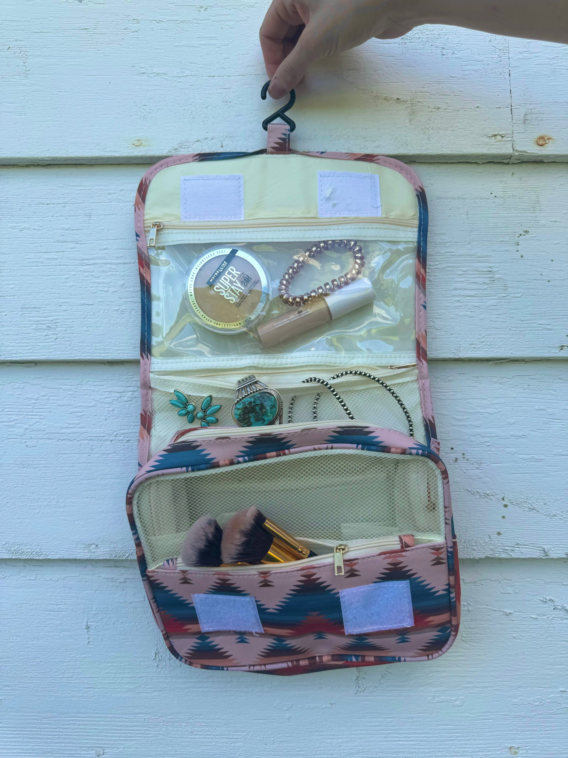 Traveling makeup/toiletries bag on a hanger - multiple zippers and pouches to store things