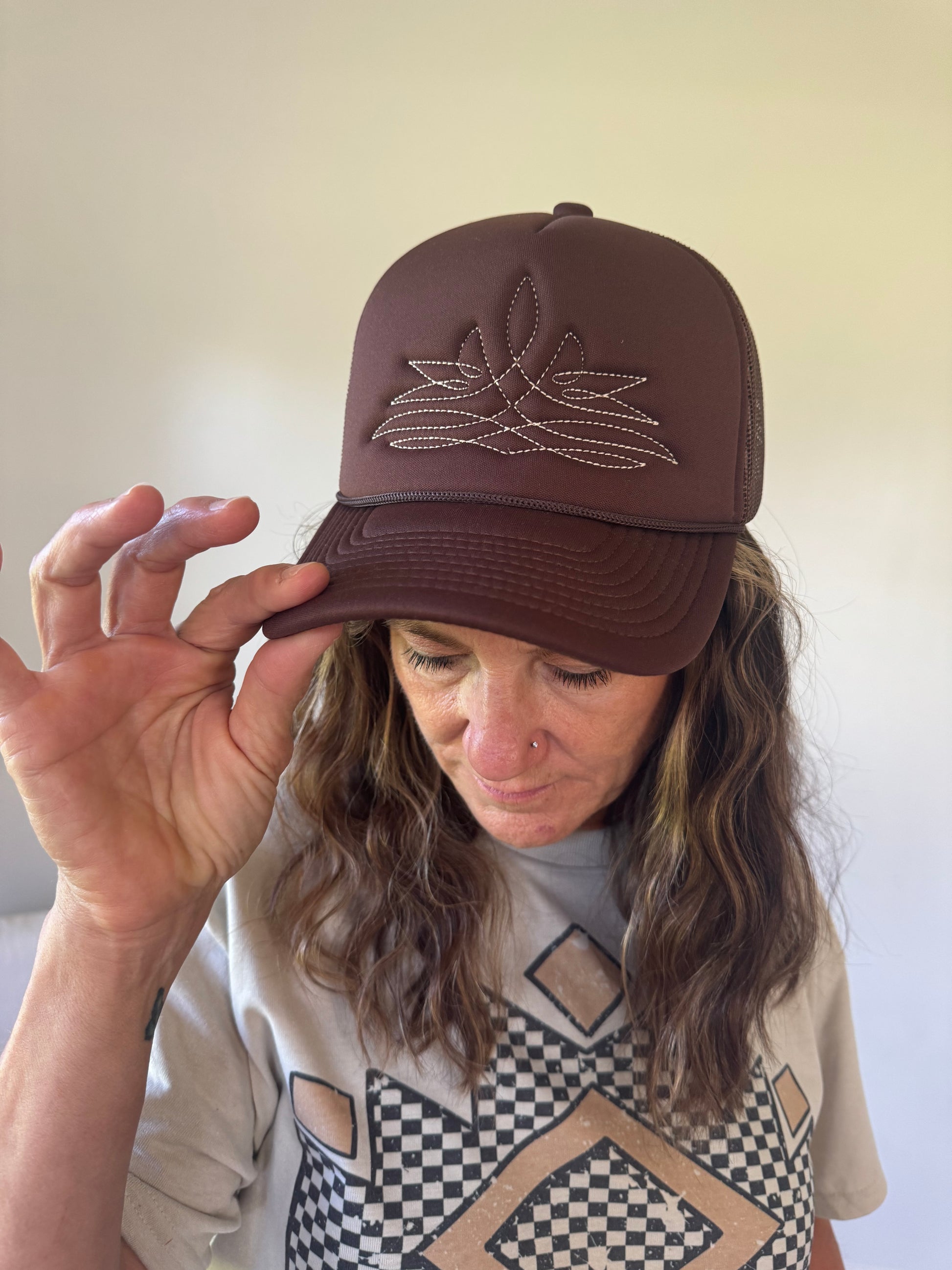 Adorable "Boot Stitch" trucker hat - adjustable size