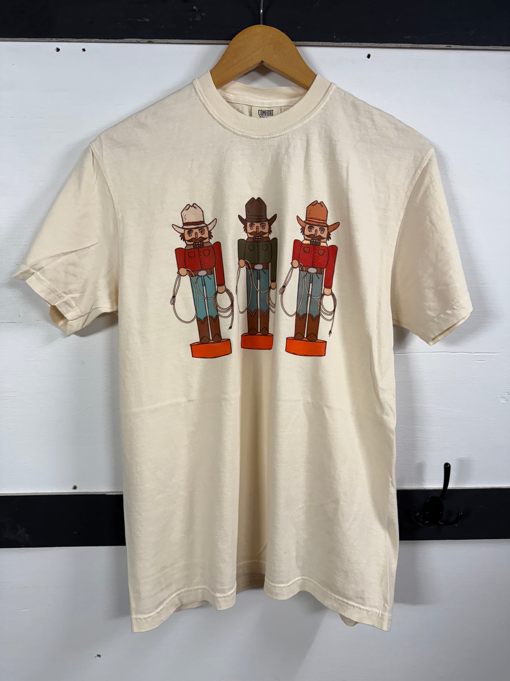 Comfort Colors Tee with Cowboy Nutcracker Design - perfect tee for your Christmas gatherings!