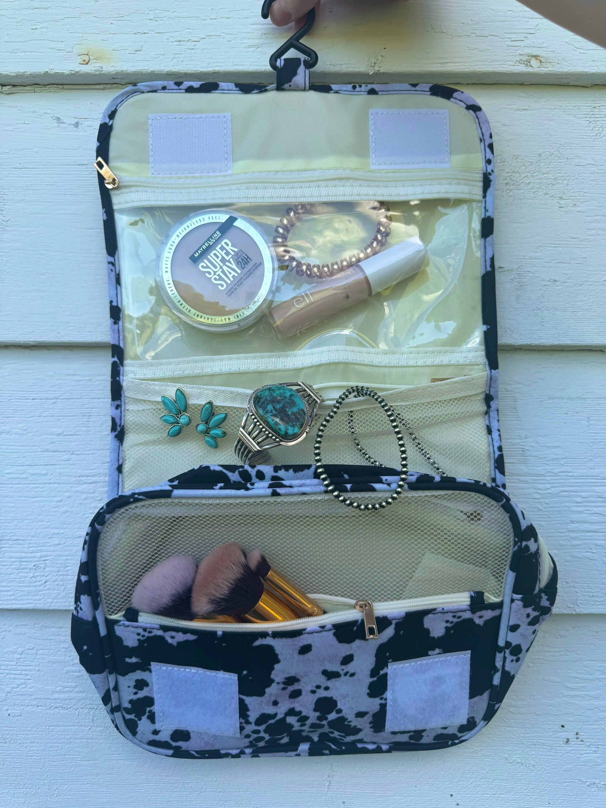 Traveling makeup/toiletries bag on a hanger - multiple zippers and pouches to store things