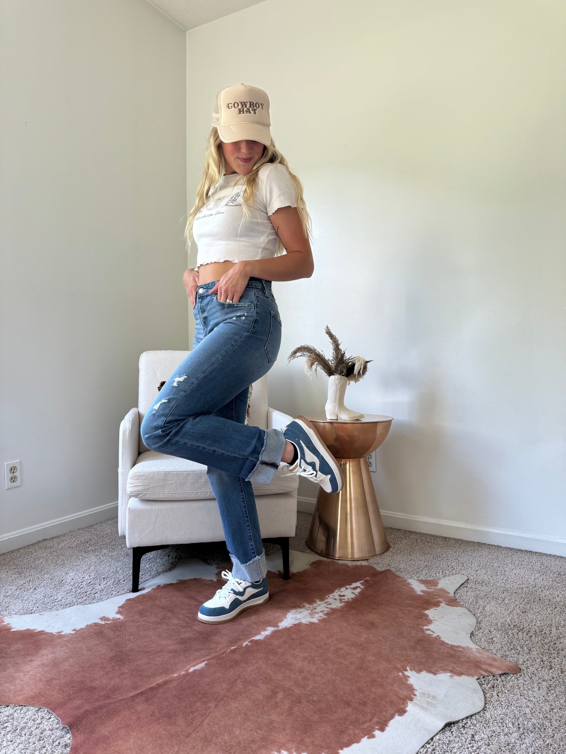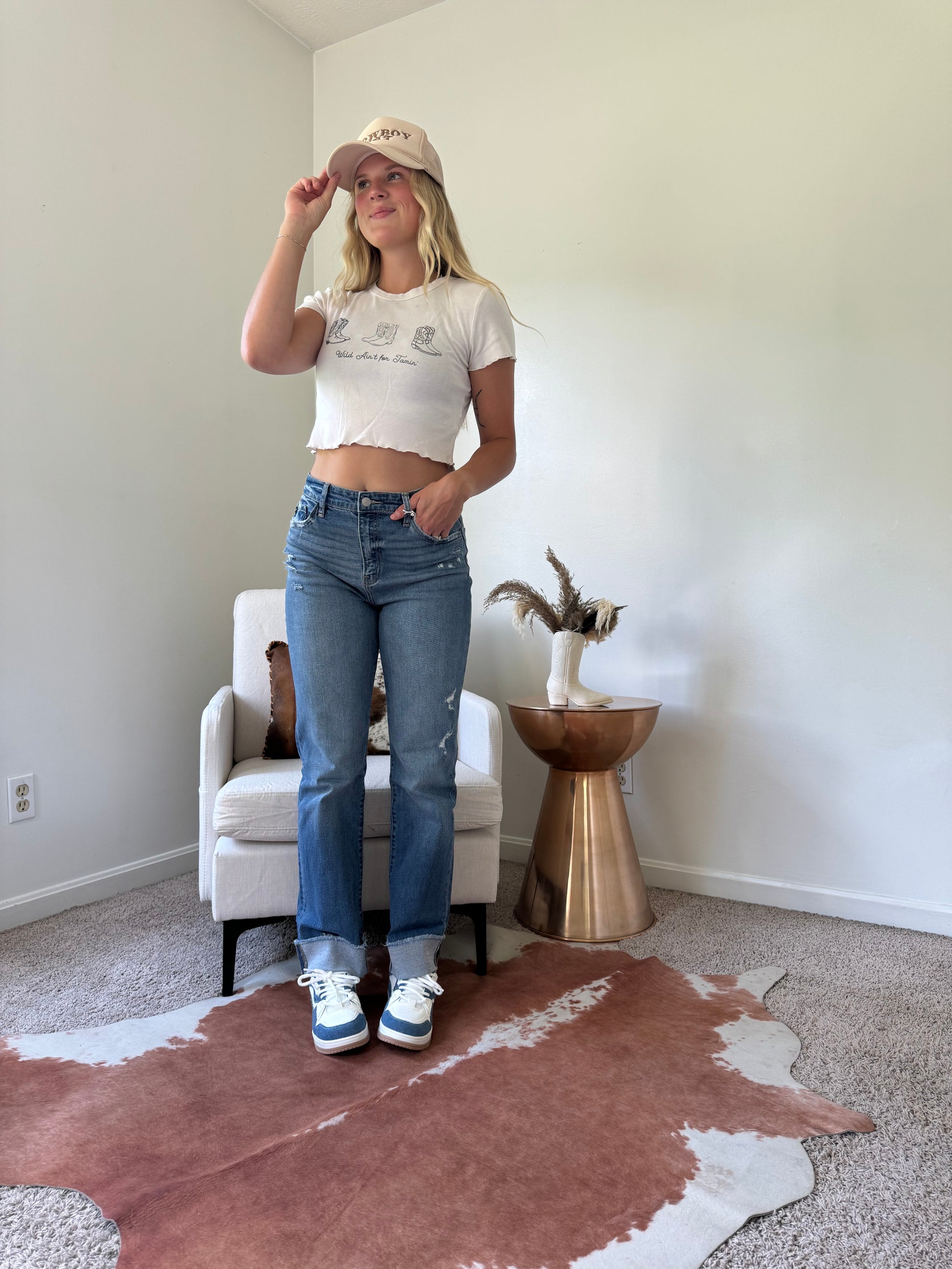Everyone loves a good pair of jeans that they can wear with any outfit they decide to throw on! These jeans are IT! They pair well with any outfit and are pretty stretchy so they also fit most body types. Not too stretchy but not too rigid, that's what makes KanCan so GOOD!