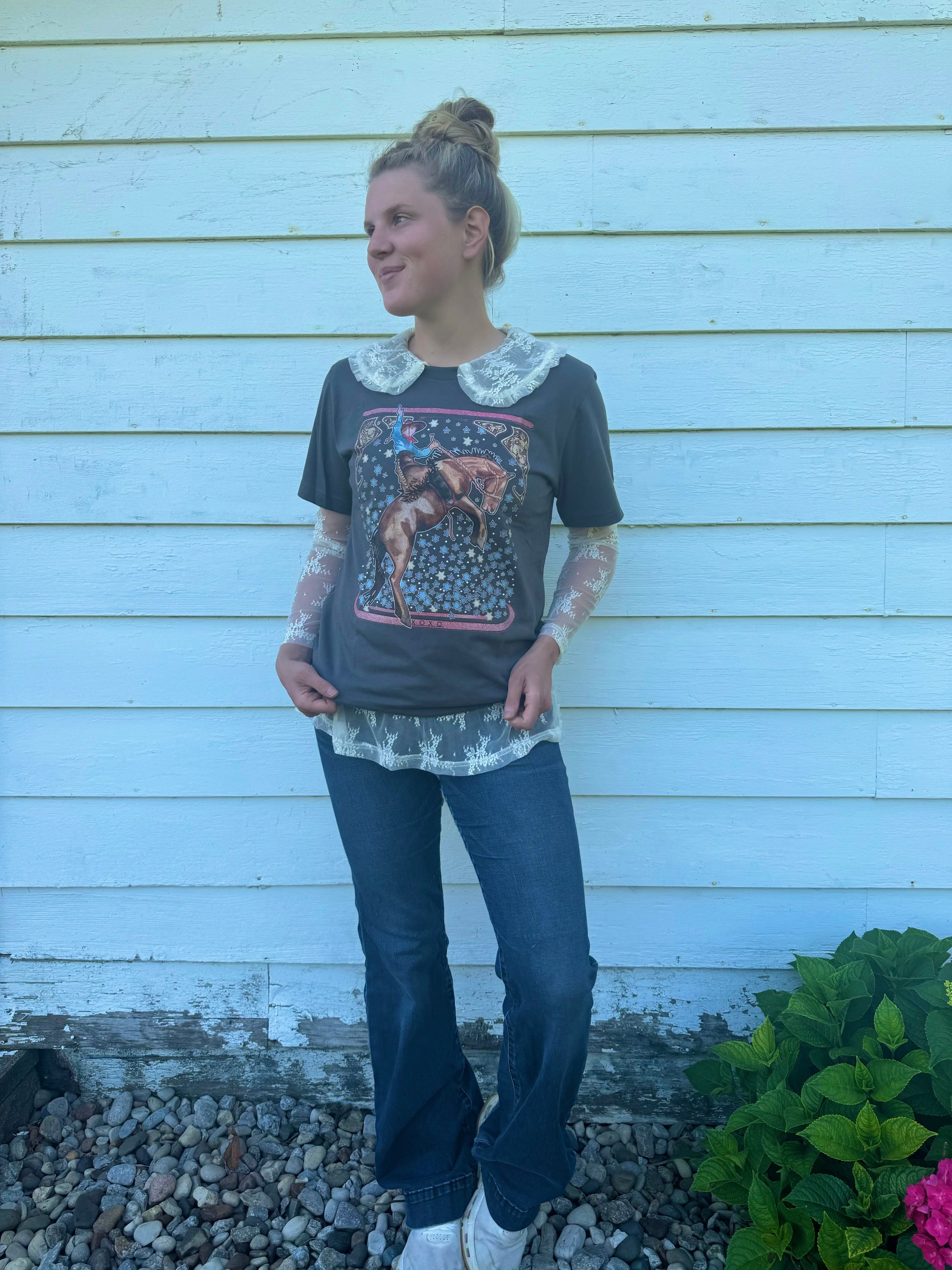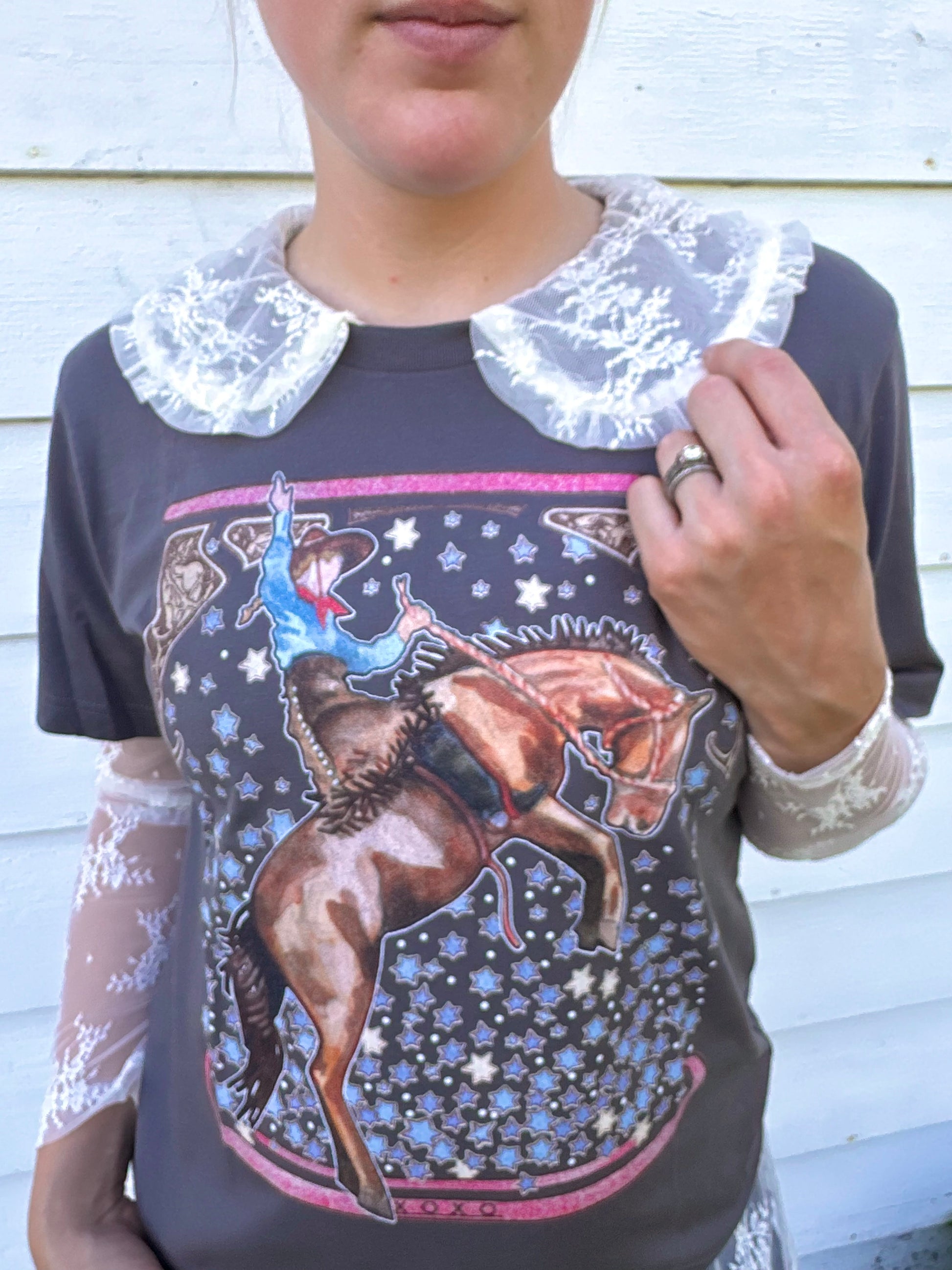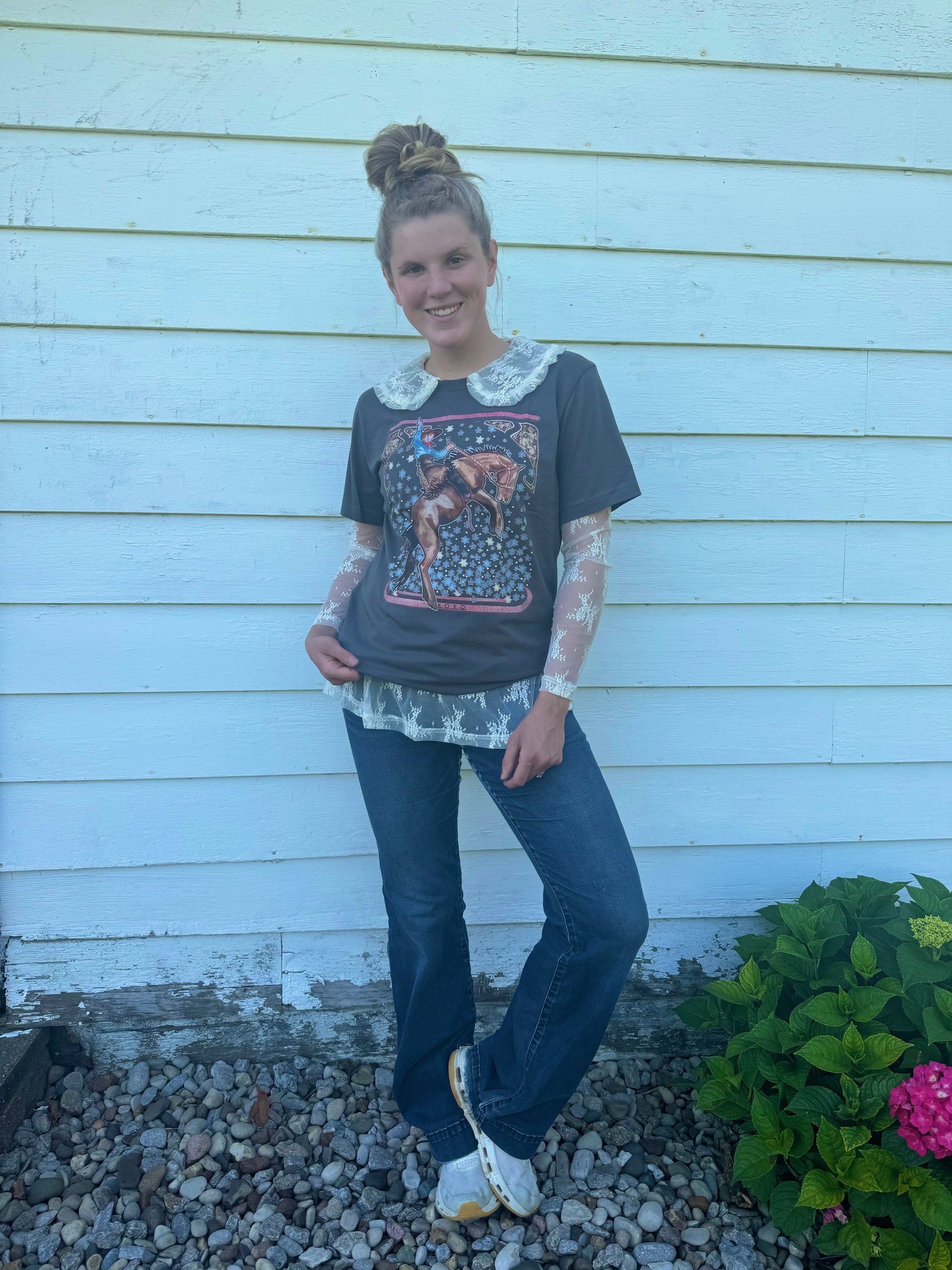 What an adorable SPIN to the viral mesh lace undershirts! Check out this collar!!!