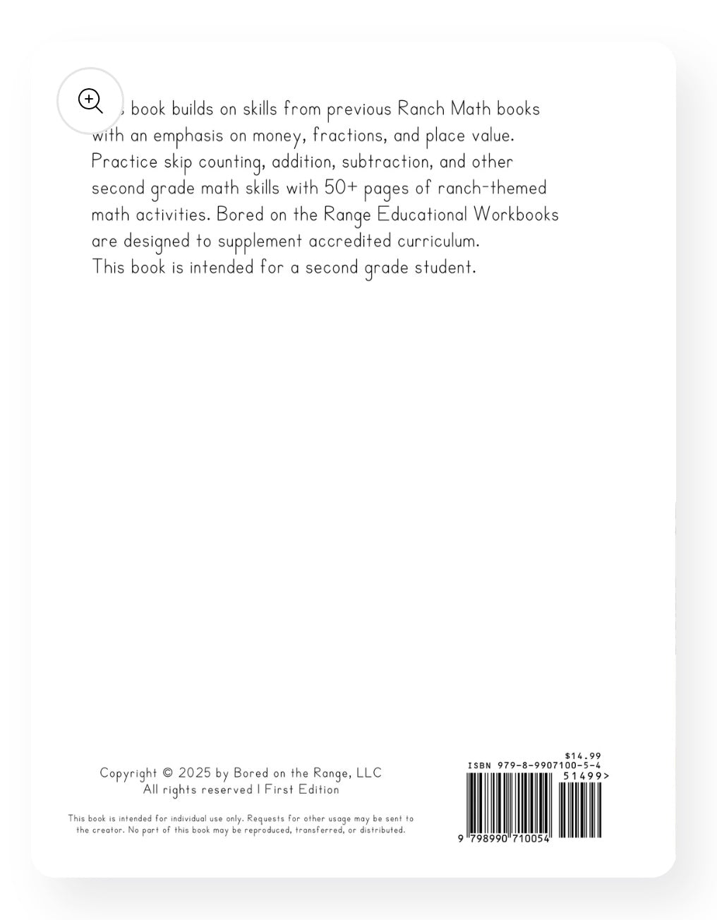 This book builds on skills from previous Ranch Math books with an emphasis on money, fractions, and place value. Practice skip counting, addition, subtraction, and other second grade math skills with 50+ pages of ranch-themed math activities. Bored on the Range Educational Workbooks are designed to supplement accredited curriculum.