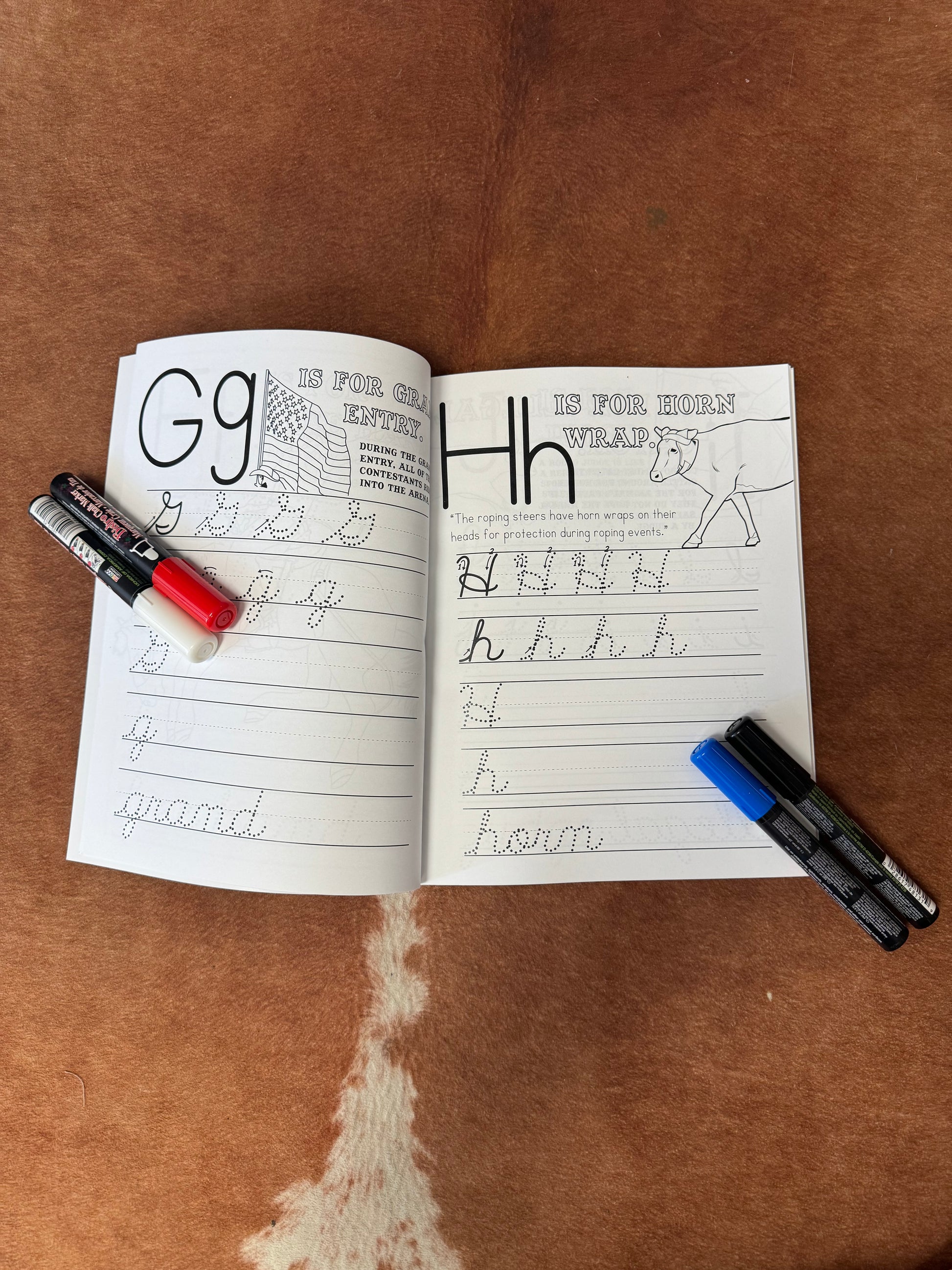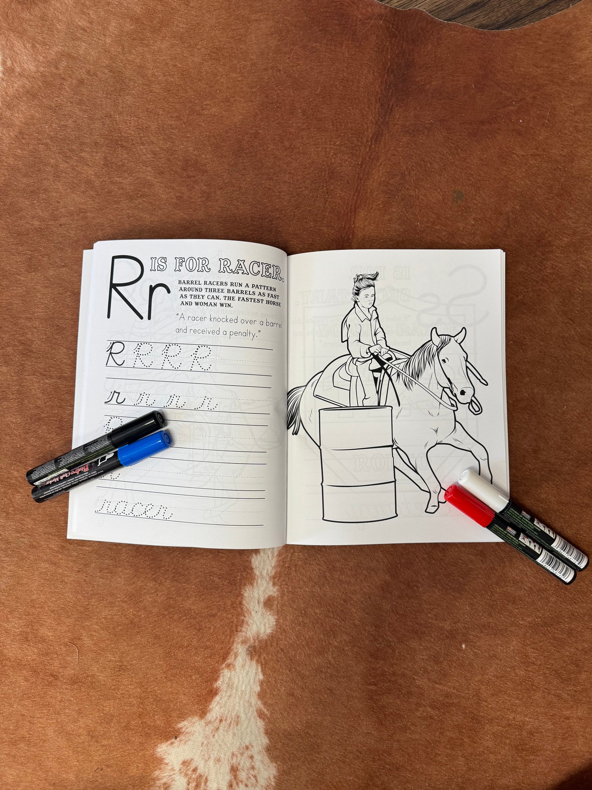 50 pages of cursive writing practice, activities, and coloring images to help your little cowhand learn cursive! Adult assistance may be needed for this workbook. Bored on the Range creates agriculture-related educational workbooks to supplement student's curriculum. A coloring page or image accompanies each alphabet page for engaged learning. This coloring book is rodeo-themed and includes bull riders, team ropers, barrel racers, cowboys, cowgirls, and much more.