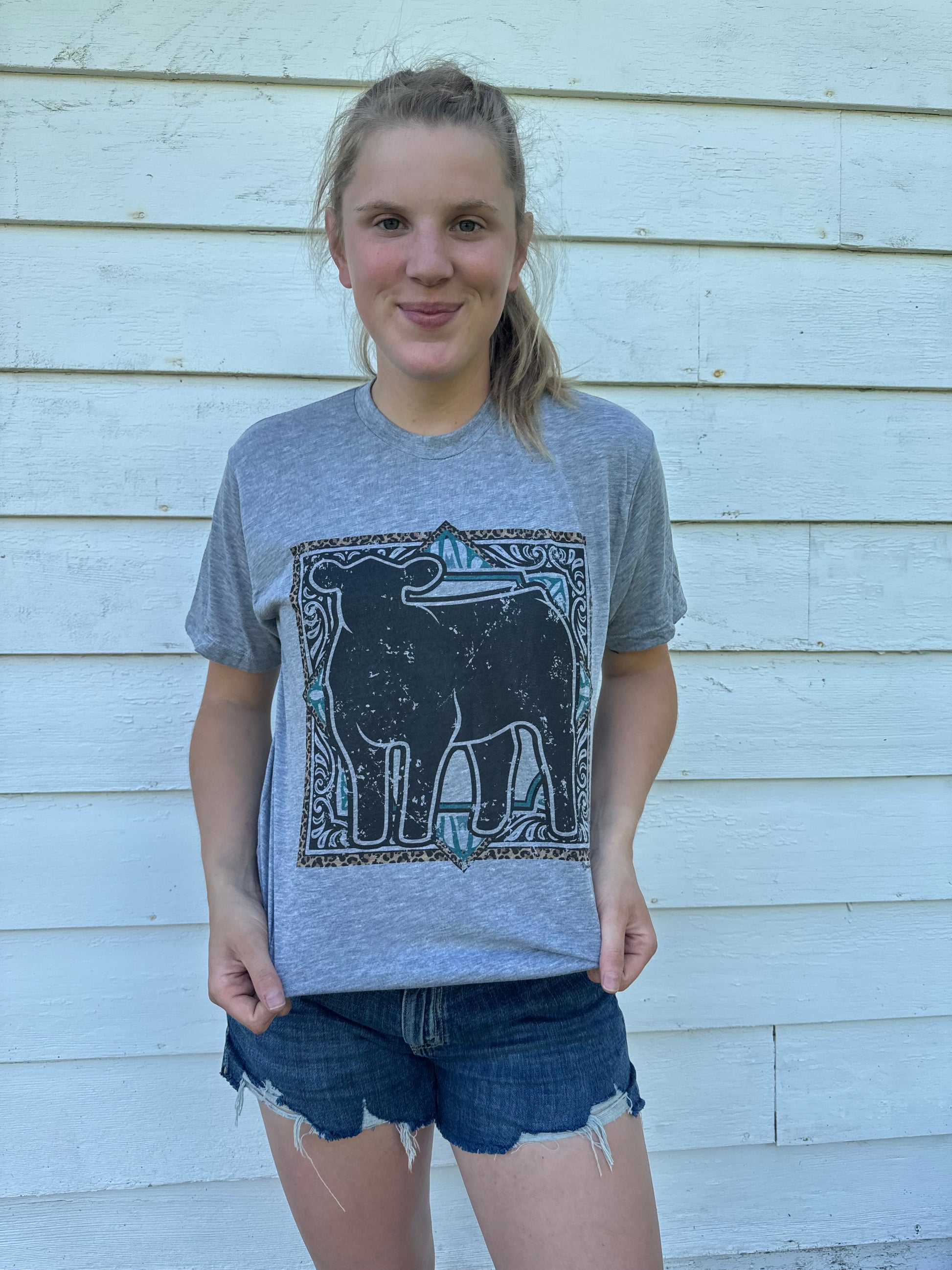 Super soft Cattle Tee in gray color with round neck - available in kids and adult sizes!