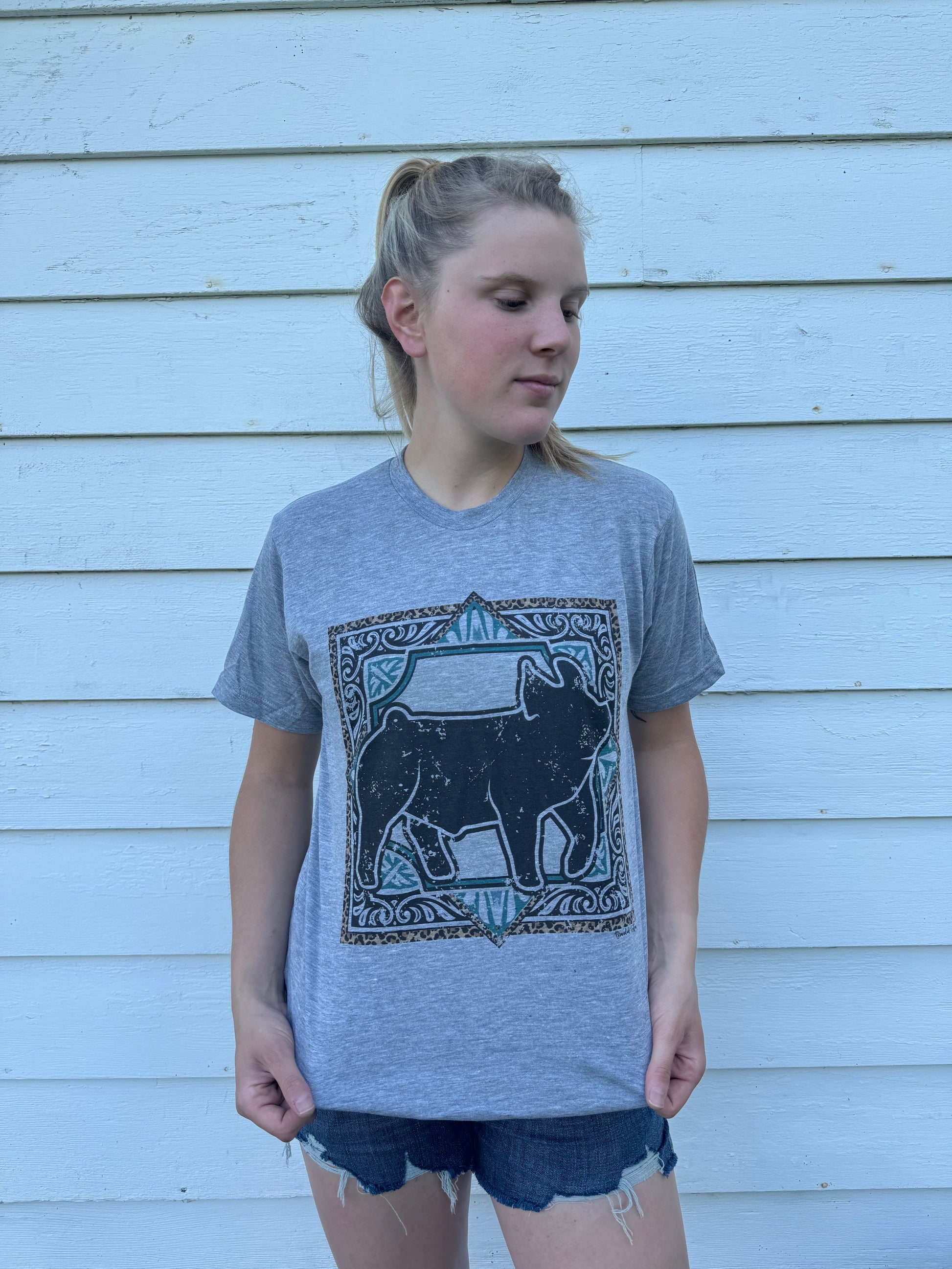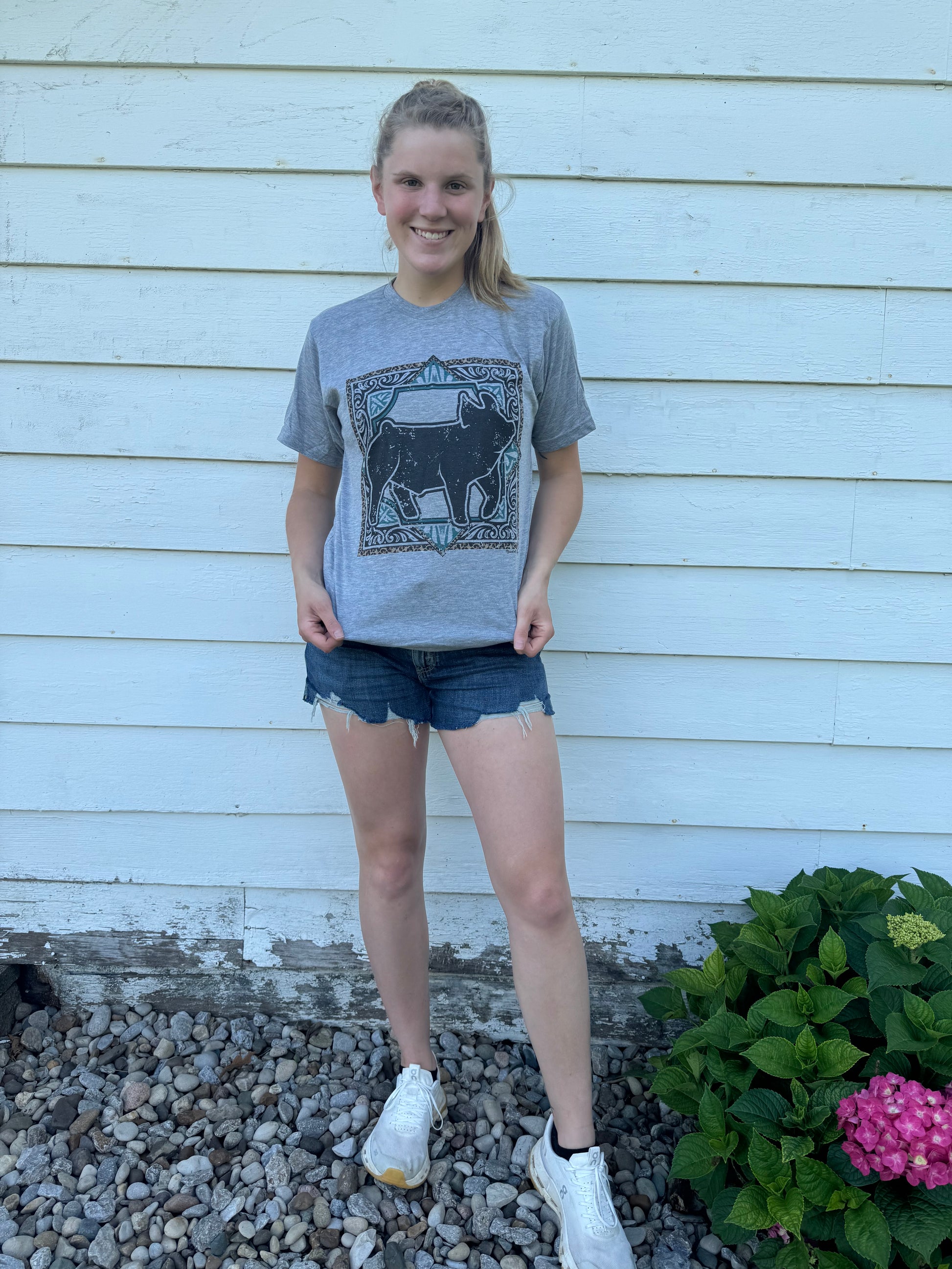 Super soft Pig Tee in gray color with round neck - available in kids and adult sizes!