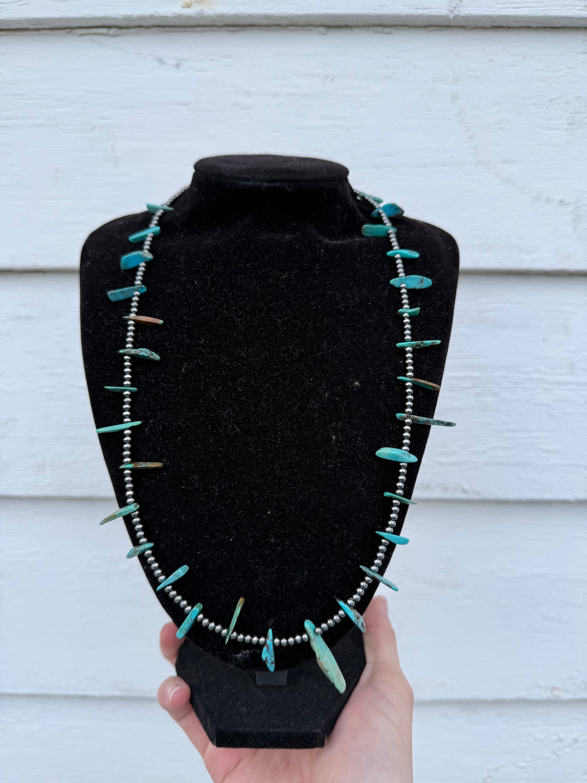 Sterling Silver Pearl & Turquoise Necklace – 21”