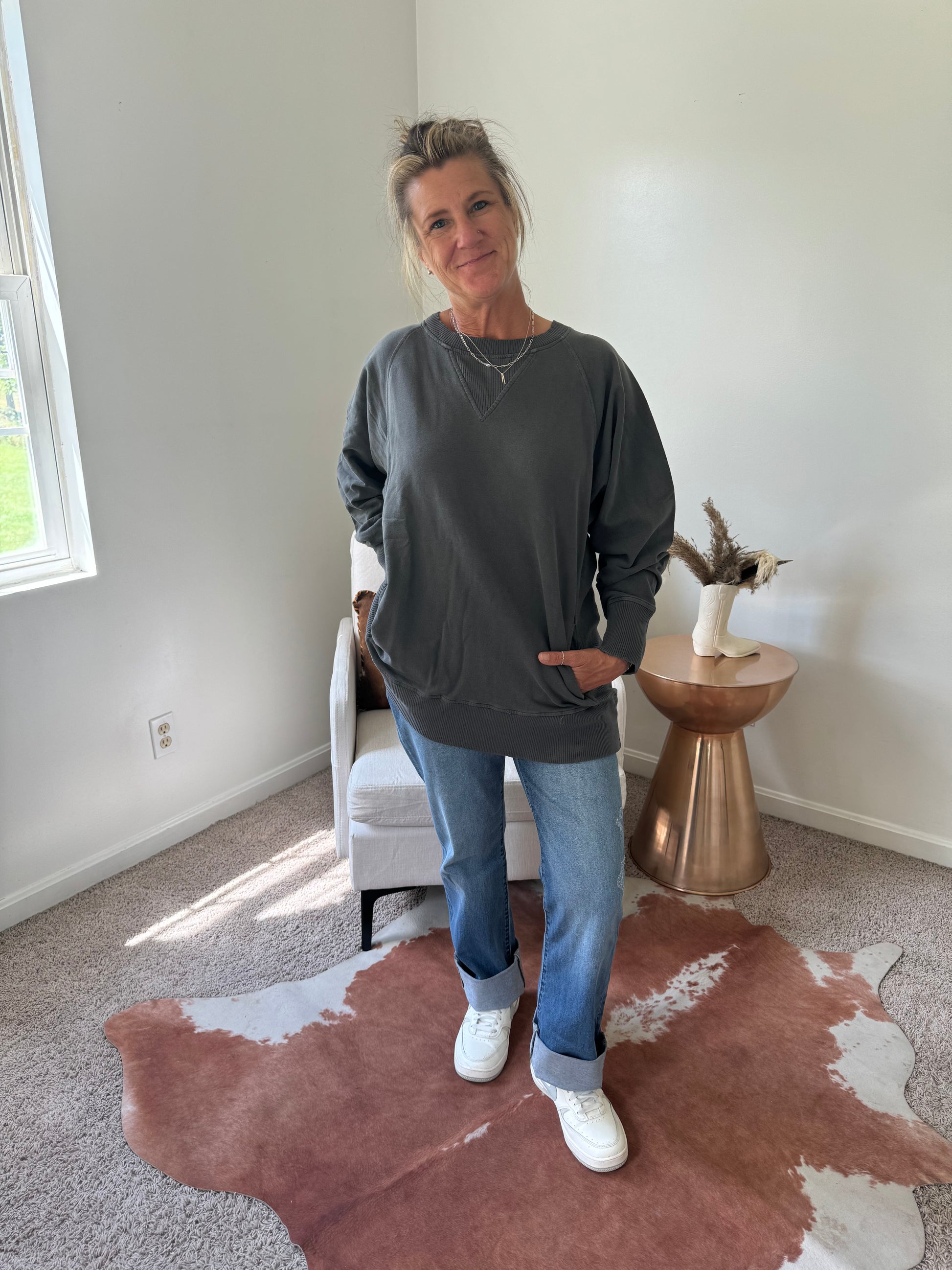 This pullover is AMAZING! You wanna know why? It has pockets!!! A great piece to throw on to wear to any and all fall events! Dress it up or dress it down!