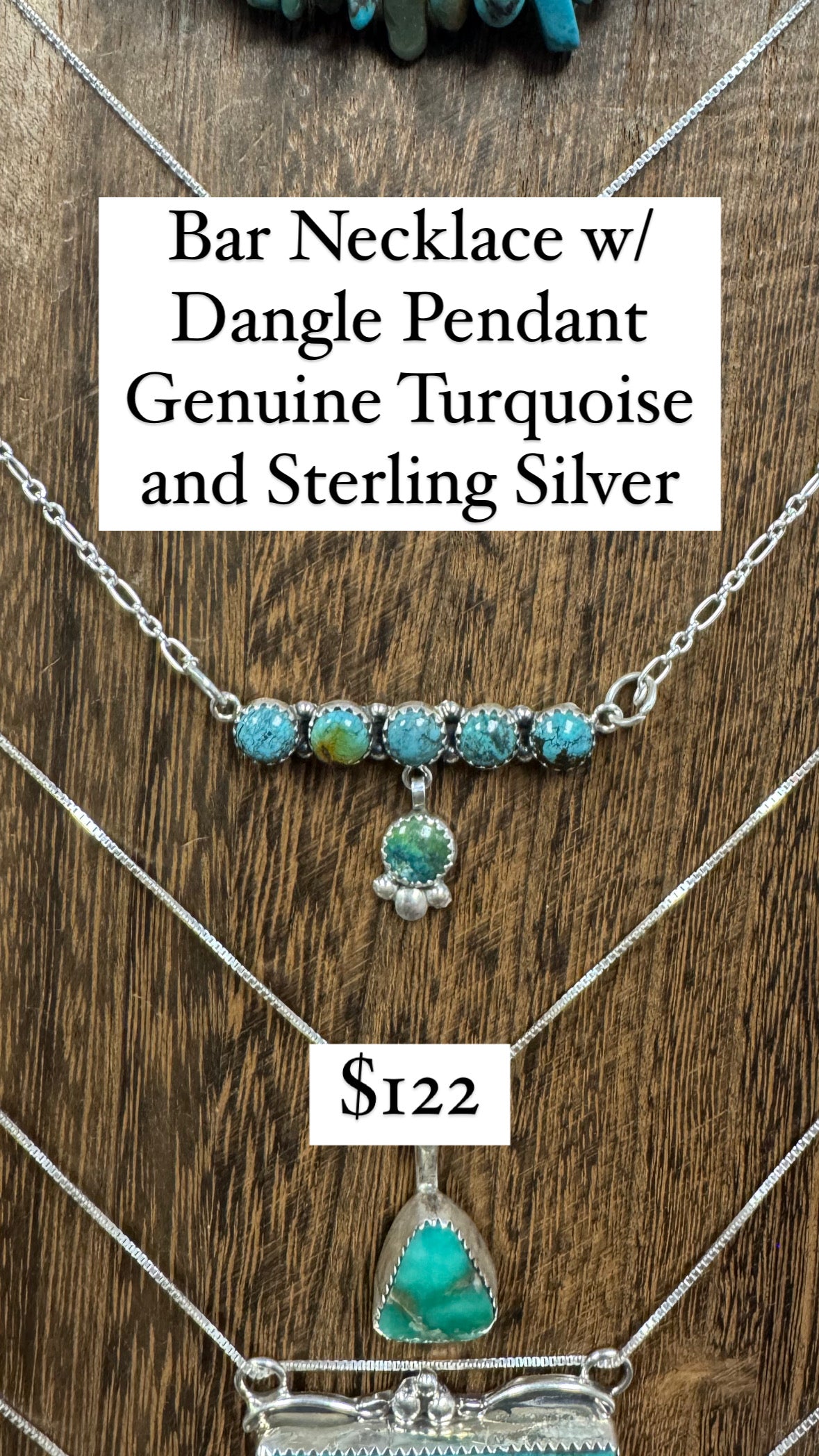 Genuine Turquoise and Sterling Silver Bar Necklace