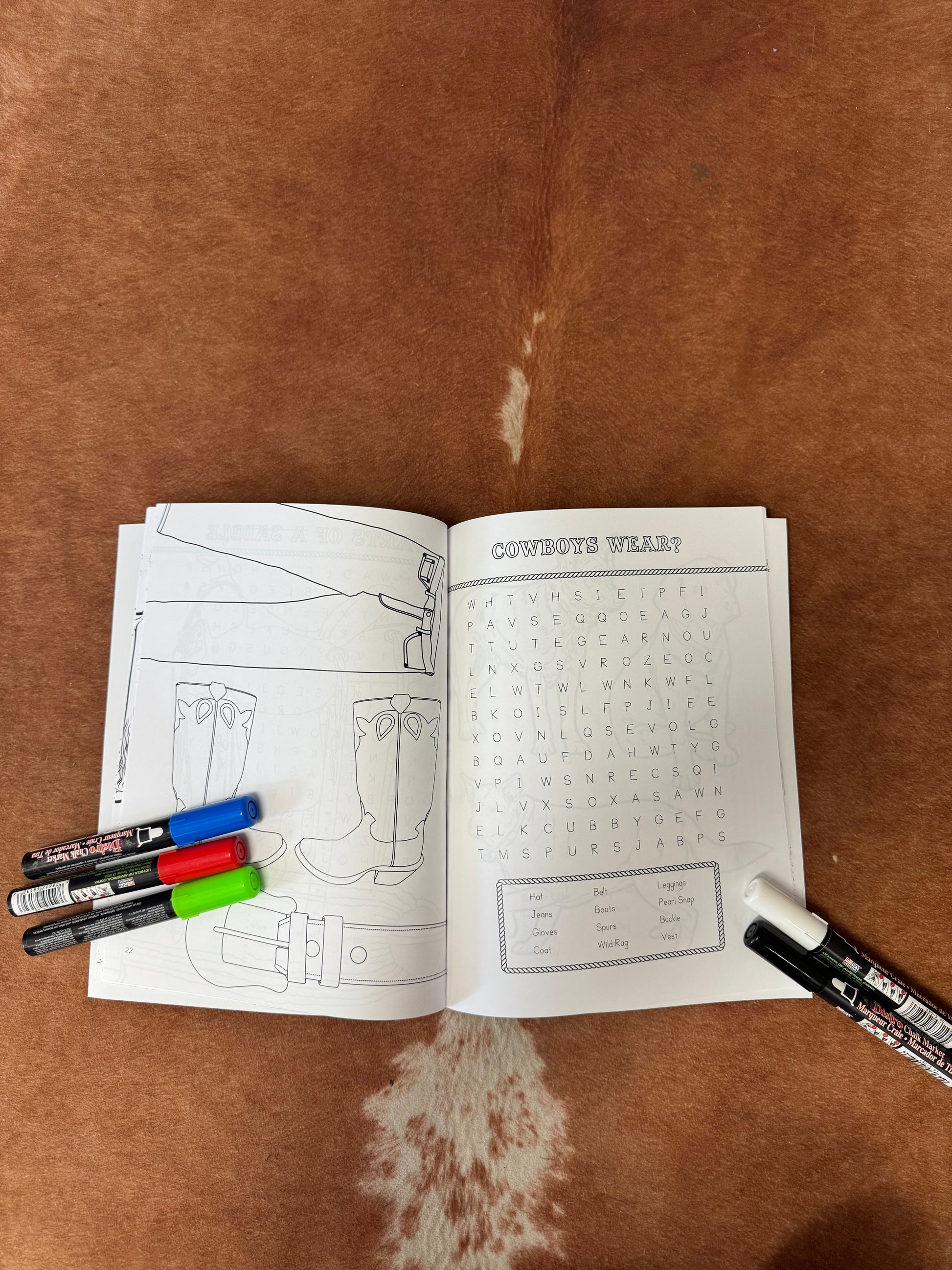 A western word search workbook with coloring pages